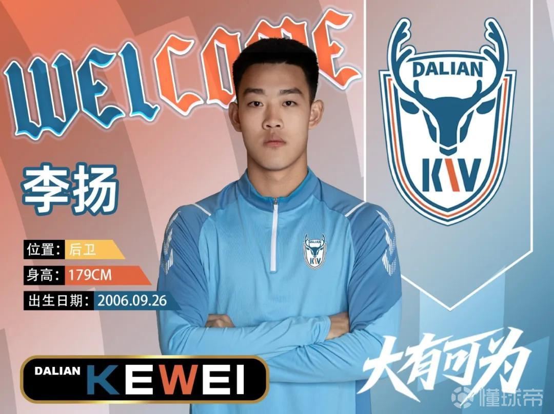 官方:大连可为签下19岁后卫李扬;球员出自恒大足校