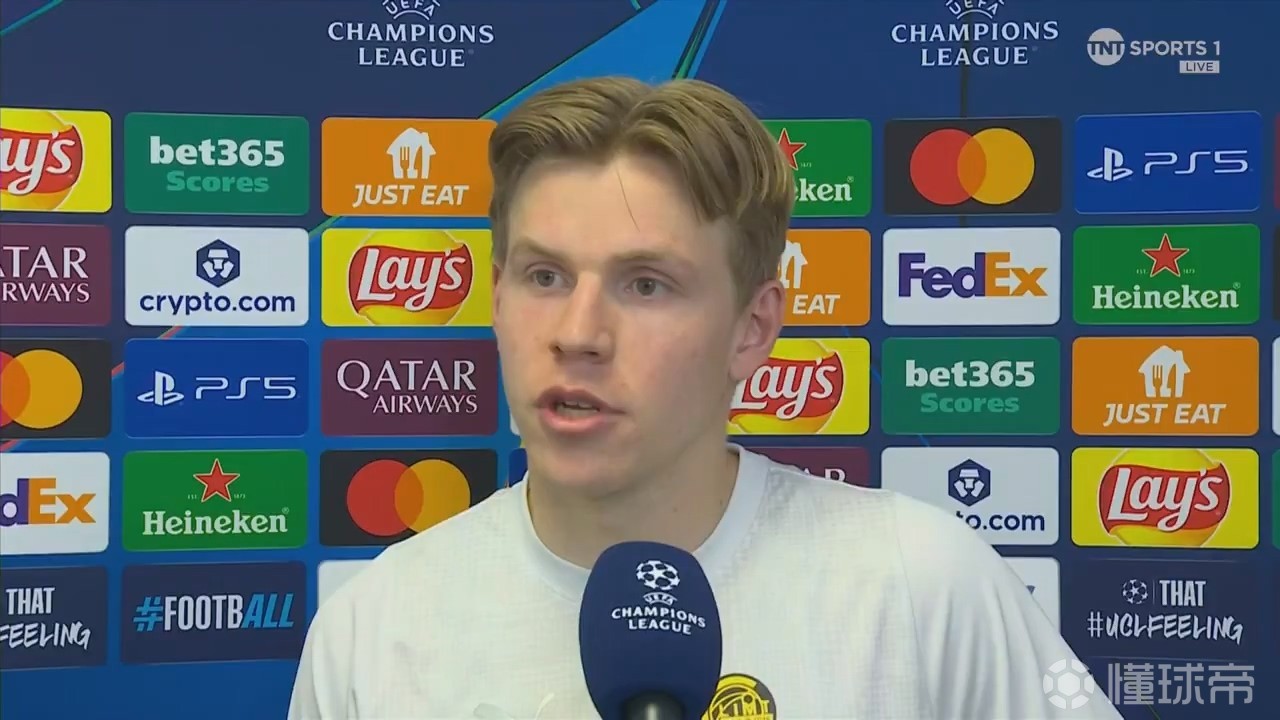 在欧冠淘汰赛附加赛总比分5-2淘汰国际米兰之后,博德闪耀前锋海于格接受了来自TNT体育的采访。