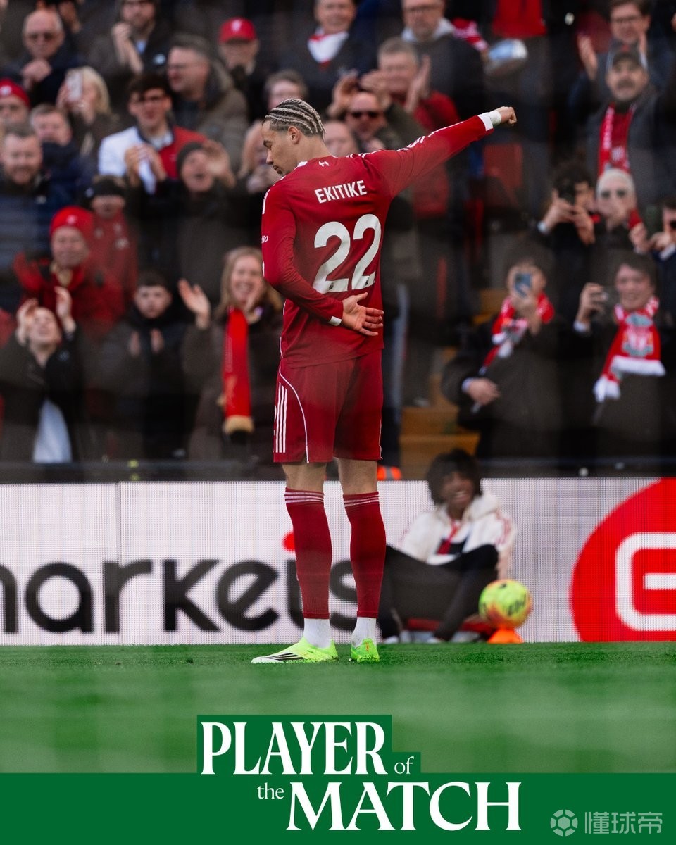 北京时间3月1日,在英超第27轮的比赛中,埃基蒂克贡献的一射两传最终帮助利物浦主场5-2大胜西汉姆联,在多赛一场的情况下积分追平排名第四的曼联,赛后埃基蒂克也被评为了本场比赛红军队内的最佳球员。
