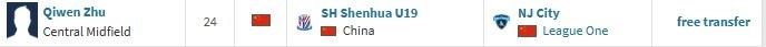 北京时间3月4日,德转更新,原上海申花中场朱启文正式加盟南京城市。