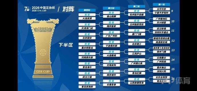 2026年足协杯抽签:中甲队第3轮登场 中超队第4轮登场