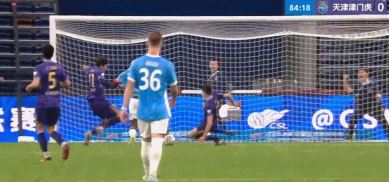 第84分钟,周定洋中场长传,韦斯利突入禁区挑过出击的齐雨熙之后铲射破门。破门之后,韦斯利与队友们疯狂庆祝,但主裁判双手上举,示意韦斯利越位在先。