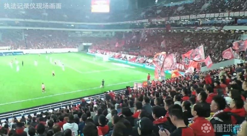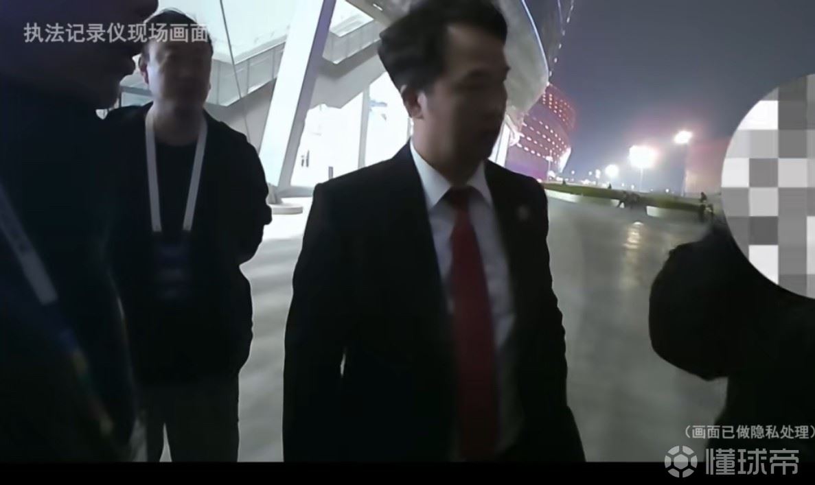 从执法记录仪现场画面来看,是中超俱乐部成都蓉城队主场比赛期间